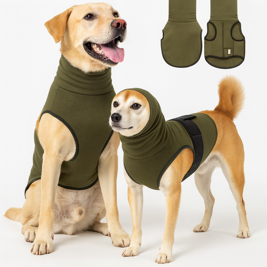 Experience unparalleled calm and comfort for your dog with a unique jacket that combines plush support with customizable fit and safety features, ensuring your pet feels secure during stressful situations like storms and vet visits.